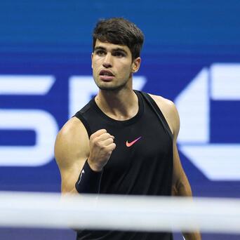 #美网2024# 男单首轮,前赛会冠军阿尔卡拉斯以6-2/4-6/6-3/6-1击败涂辰立,豪取大满贯15连胜,次轮将战范德尚舒普;